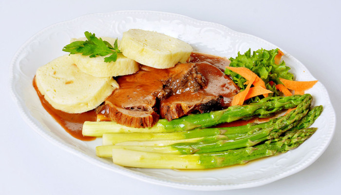 Pikantes Gulasch, Böhmische Knödel und Rettichsalat 19,00 €